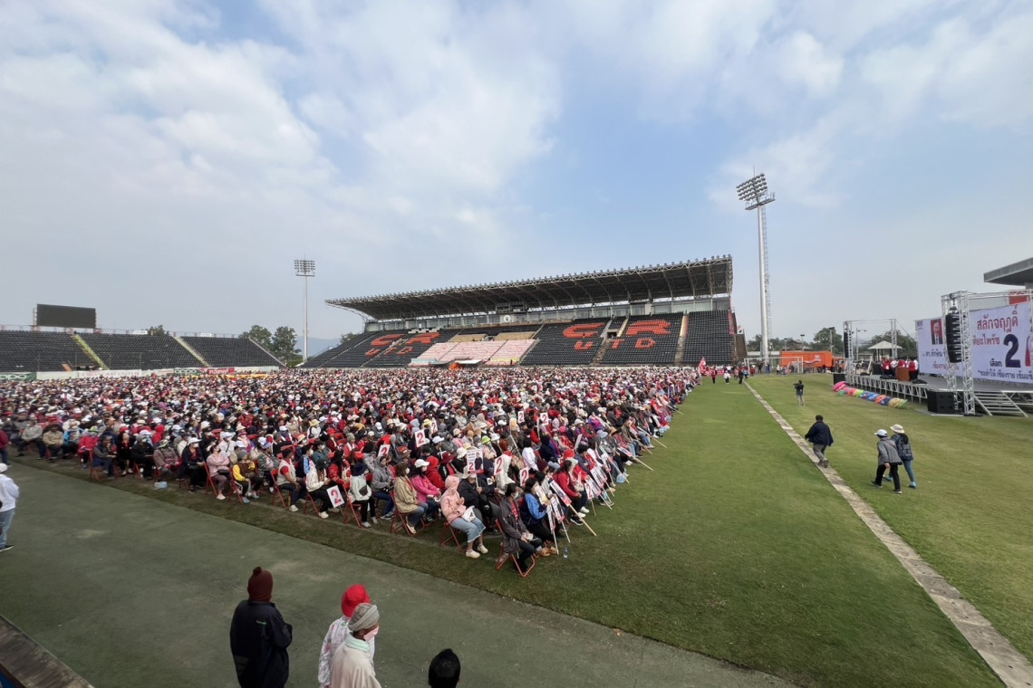 วันที่ 29 ม.ค.2568 ผู้สื่อข่าวรายงาน ว่า ที่สนามสิงห์ เชียงราย สเตเดี้ยม ซึ่งเป็นสนามเหย้าของทีมฟุตบอลสิงห์ เชียงราย ยูไนเต็ด ตั้งอยู่ ต.บ้านดู่ อ.เมืองเชียงราย จ.เชียงราย ประชาชนจำนวนมาก ที่สนับสนุนพรรคเพื่อไทย และผู้สมัครรับเลือกตั้งเป็นนายกและสมาชิกองค์การบริหารส่วนจังหวัด (อบจ.) เชียงราย ต่างพากันเดินทางไปรอฟังนายทักษิณ ชินวัตร อดีตนายกรัฐมนตรี ที่มีกำหนดจะเดินทางไปปราศรัยสนับสนุนนางสลักจฤฎดิ์ ติยะไพรัช ผู้สมัครรับเลือกตั้งเป็นนายก อบจ.เชียงราย ในนามพรรคเพื่อไทยและผู้สมัครเป็นสมาชิก อบจ.เชียงราย