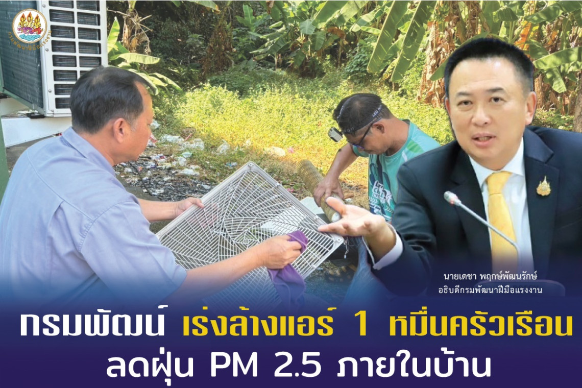 กรมพัฒนาฝีมือแรงงานทยอยล้างแอร์ 1 หมื่นครัวเรือน ของขวัญปีใหม่มอบให้พี่น้องชาวแรงงาน ลดฝุ่น PM 2.5 ภายในบ้าน เพิ่มอากาศบริสุทธิ์