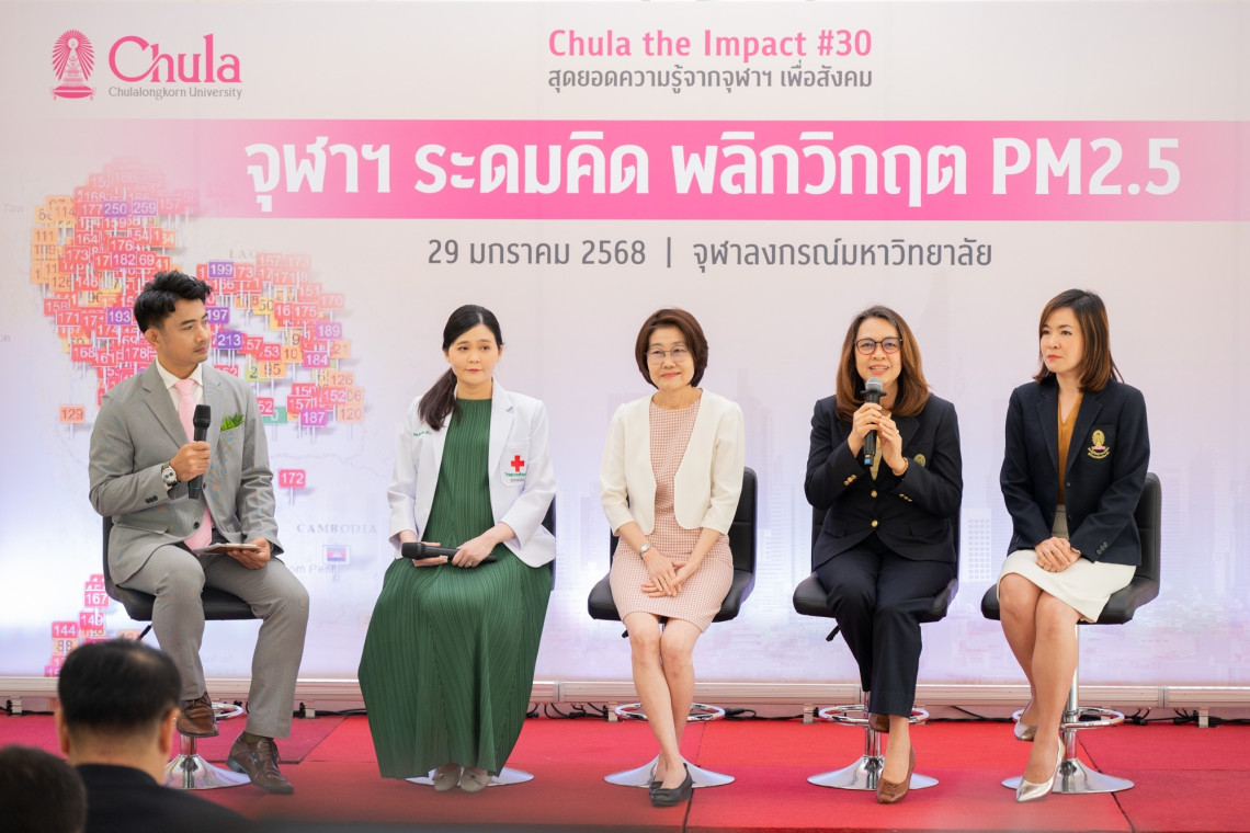 จุฬาลงกรณ์มหาวิทยาลัยจัดงานเสวนาทางวิชาการ Chula the Impact ครั้งที่ 30 ภายใต้หัวข้อ “จุฬาฯ ระดมคิด พลิกวิกฤต PM2.5” เมื่อวันที่ 29 ม.ค.68 ณ เรือนจุฬานฤมิต ระดมผู้เชี่ยวชาญจากหลากหลายสาขาร่วมแลกเปลี่ยนความรู้และนำเสนองานวิจัย เพื่อเป็นฐานในการขับเคลื่อน สื่อสารชี้นำสังคม และสนับสนุนมาตรการ นโยบายในการป้องกันและแก้ไขปัญหามลพิษทางอากาศ ลดผลกระทบจากฝุ่น PM2.5 ซึ่งเป็นปัญหาสิ่งแวดล้อมที่ส่งผลต่อสุขภาพของประชาชน