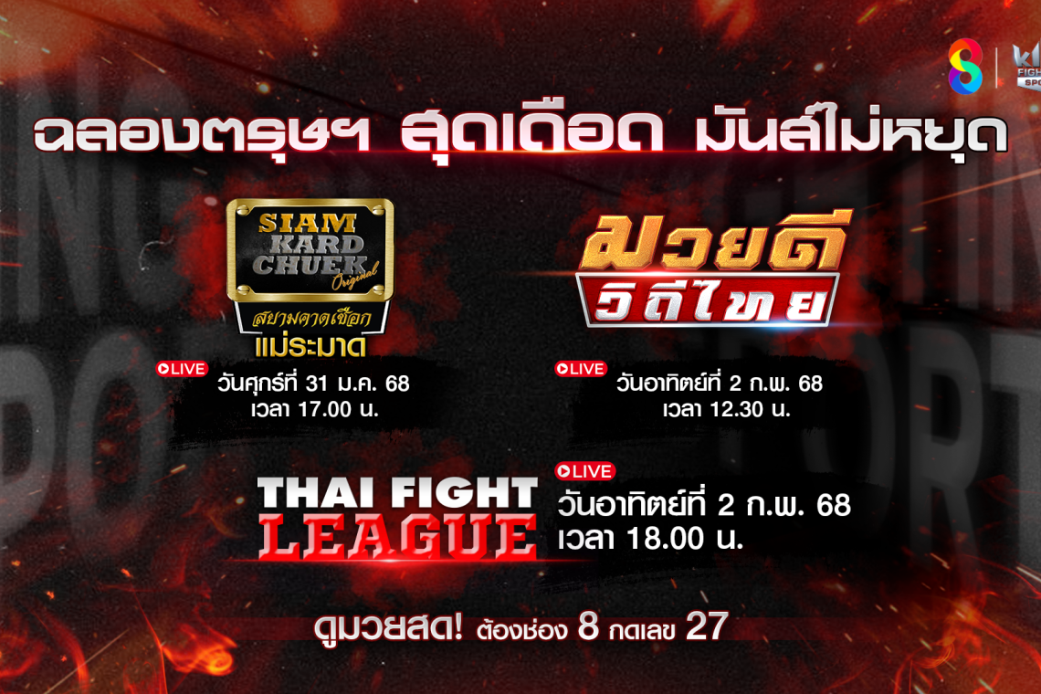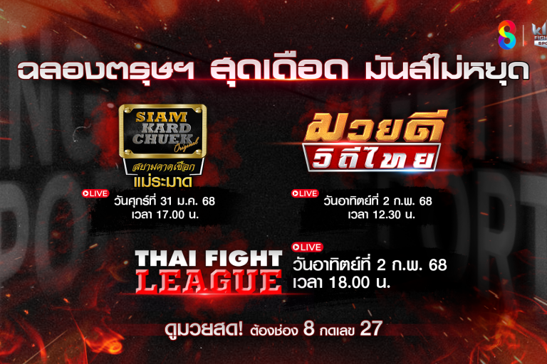 ดังนั้น ห้ามพลาดชม 3 รายการมวยไทยสุดสัปดาห์ การันตีความมันที่สุดของประเทศใน รายการพิเศษ “สยามคาดเชือก แม่ระมาด” ในวันศุกร์ที่ 31 มกราคม เวลา 17.10 น. พร้อมปิดท้ายในวันอาทิตย์ที่ 2 กุมภาพันธ์ กับรายการ มวยดีวิถีไทย เวลา 12.30 น. และ รายการ THAI FIGHT LEAGUE เวลา 18.00 น. ทางช่อง 8 กดเลข 27 ที่มีรายการมวยไทยมากที่สุด!