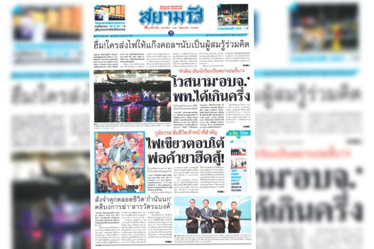 หน้า 1 หนังสือพิมพ์สยามรัฐรายวัน ฉบับวันศุกร์ที่ 31 มกราคม 2568