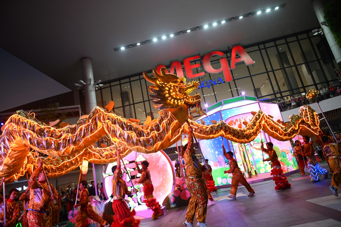 ศูนย์การค้าเมกาบางนา ร่วมฉลองตรุษจีนอย่างยิ่งใหญ่ ในงาน MEGA CHINESE NEW YEAR 2025 ภายใต้แนวคิด LUCK – LOVE – LIFE เสริมโชค เติมรัก พร้อมรับชีวิตดีๆ ในปีมะเส็ง ในปีนี้เมกาบางนาร่วมอำนวยพรมอบความเป็นสิริมงคลในเทศกาลตรุษจีนด้วยไฮไลท์การแสดงสุดพิเศษ กับการแสดงมังกรทองกับสิงโตประดับไฟ LED พร้อมนาจา จากคณะสิงโตมังกรทอง ดีกรีแชมป์มังกรทองแห่งประเทศไทย และเจ้าของแชมป์ถ้วยพระราชทาน 3 สมัย ที่ได้ผสมผสานเทคนิคการทำมังกรติดไฟ LED มาเพิ่มสีสันในการแสดงภาคกลางคืนเป็นเจ้าแรกในประเทศไทย โดยเป็นโชว์สุดพิเศษที่หาชมได้ยาก ด้วยความยิ่งใหญ่อลังการของมังกรทอง LED ขนาดยาว 35 เมตร มาพร้อมกับสิงโต LED สวยงามโดดเด่นในยามกลางคืน ซึ่งเป็นสัญลักษณ์ของพลังอันยิ่งใหญ่ ความเจริญรุ่งเรือง มั่งคั่งร่ำรวย โดยขบวนมังกรได้ทำการแสดงท่ามกลางผู้ชมเนื่องแน่น ณ เมน เอนทรานซ์ พร้อมส่งมอบความโชคดีให้กับลูกค้าทั่วทั้งศูนย์การค้าเมกาบางนาด้วย