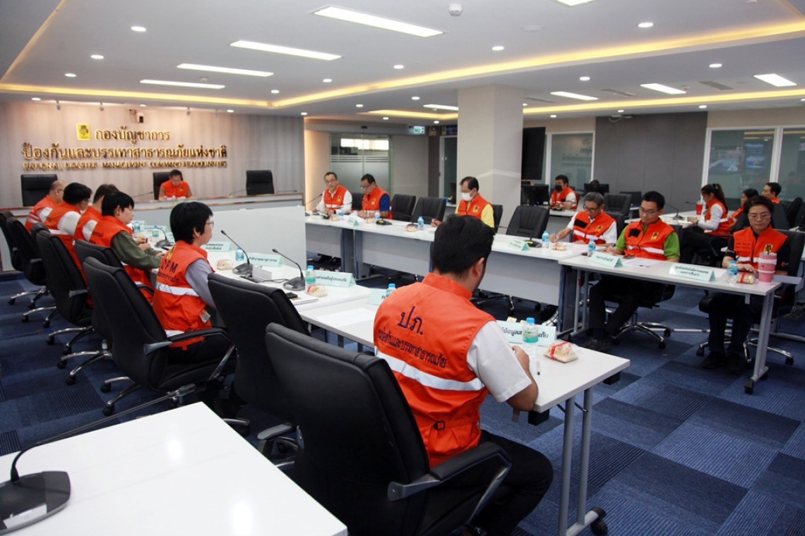 วันที่ 5 ก.พ.68 ณ ห้องกองบัญชาการป้องกันและบรรเทาสาธารณภัยแห่งชาติ (บกปภ.ช.) อาคาร 3 ชั้น 5 กรมป้องกันและบรรเทาสาธารณภัยจัดประชุมกองบัญชาการป้องกันและบรรเทาสาธารณภัยแห่งชาติ เพื่อติดตามสถานการณ์และการแก้ไขปัญหาไฟป่า หมอกควัน และฝุ่นละอองขนาดเล็ก (PM2.5) โดยมีผู้บริหาร ปภ. และผู้แทนหน่วยงานที่เกี่ยวข้องเข้าร่วมประชุมฯ ยังคงรณรงค์เคาะประตูบ้าน “หยุดเผา หยุดฝุ่น เพื่อคุณ เพื่อเรา” อย่างต่อเนื่อง พร้อมบังคับใช้กฎหมายควบคุมการเผาอย่างเข้มงวดทุกพื้นที่ ตลอดจนติดตามและเฝ้าระวังสถานการณ์ฝุ่น ในช่วงวันที่ 6-8 ก.พ. 68 อย่างใกล้ชิด และติดตามต้นตอของการเกิดจุดความร้อนในพื้นที่ เพื่อหาแนวทางแก้ไขปัญหาและลดผลกระทบของฝุ่นละอองที่มีผลต่อสุขภาพของประชาชนให้เกิดขึ้นน้อยที่สุด
