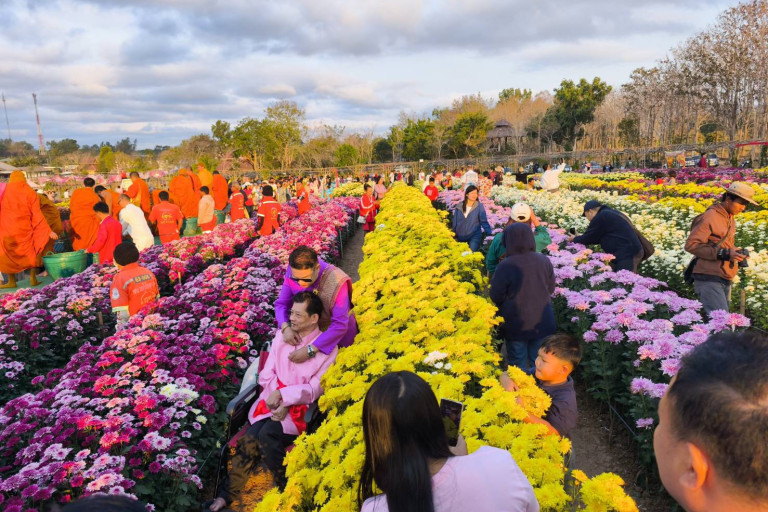 โคราช เริ่มแล้วงานเบญจมาศบานในม่านหมอก วังน้ำเขียว ต้อนรับวาเลนไทน์ อิ่มบุญตักบาตรพระ 11 รูป กลางทุ่งดอกไม้บานสะพรั่ง