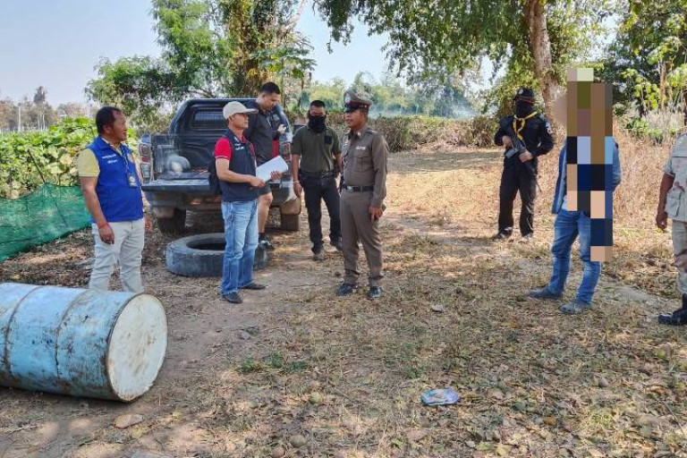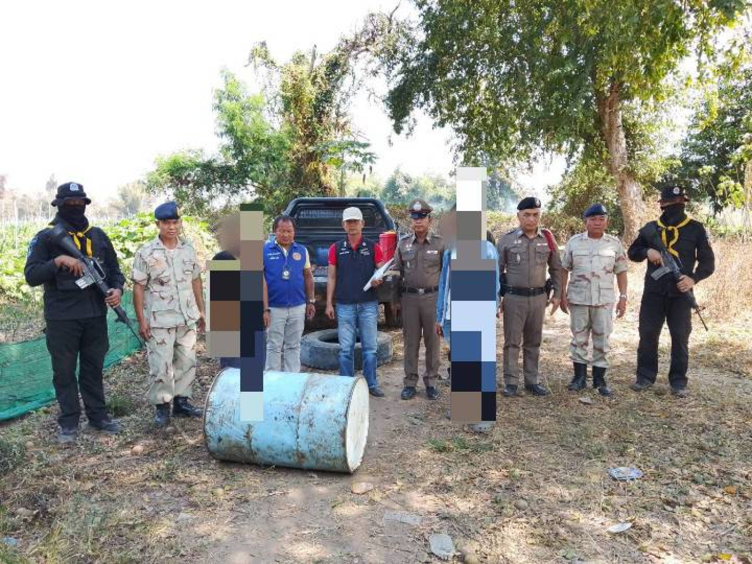 วันที่ 10 ก.พ.68 กำลังพล กองร้อยทหารพรานที่ 3501 หน่วยเฉพาะกิจกรมทหารพรานที่ 35 ที่กำลังลาดตระเวน/เฝ้าตรวจ เพื่อสกัดกั้นและปราบปรามอาชญากรรมข้ามชาติ การค้ามนุษย์ และการกระทำผิดตาม พ.ร.บ.ยาเสพติด, พ.ร.บ.อาวุธสงคราม, พ.ร.บ.ศุลกากร และการกระทำผิดกฎหมายอื่น ๆ ในพื้นที่รับผิดชอบ อ.แม่ระมาด จ.ตาก มาถึงที่เกิดเหตุบริเวณไร่ของราษฎรซึ่งอยู่ริมแม่น้ำเมย ตรวจพบ รถยนต์กระบะ ยี่ห้ออีซูซุ ดีแม็ค สีเทา หมายเลขทะเบียน บบ 30XX ตาก หลังกระบะบรรทุกถังน้ำมัน ขนาด 200 ลิตร จำนวน 1 ใบ ภายในบรรจุน้ำมัน (ดีเซล) ประมาณ 200 ลิตร โดยมี นายวา เป็นคนขับรถ