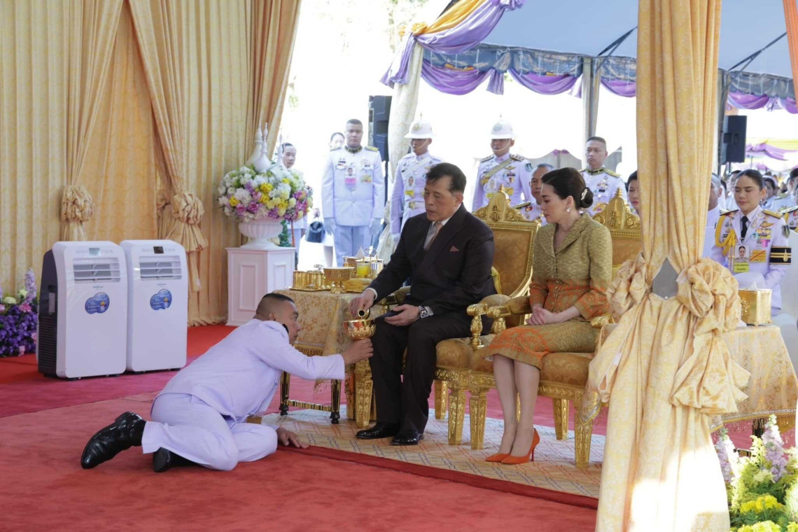 พระบาทสมเด็จพระเจ้าอยู่หัว และสมเด็จพระนางเจ้าฯ พระบรมราชินี ประทับรถยนต์พระที่นั่ง เสด็จฯ ถึง อาคารวิจัย นวัตกรรมและถ่ายทอดเทคโนโลยีการแพทย์ คณะแพทยศาสตร์ มหาวิทยาลัยสงขลานครินทร์ วงดุริยางค์บรรเลงเพลงสรรเสริญพระบารมี พลตรี เฉลิมพร ขำเขียว ผู้บัญชาการกองพลทหารราบที่ 15 นายทหารราชองครักษ์ในพระองค์ฯ กราบบังคมทูลรายงาน ศาสตราจารย์ นายแพทย์จรัส สุวรรณเวลา นายกสภามหาวิทยาลัยสงขลานครินทร์ ศาสตราจารย์สนิท อักษรแก้ว กรรมการสภามหาวิทยาลัยสงขลานครินทร์ ผู้ทรงคุณวุฒิ ผู้ช่วยศาสตราจารย์นิวัติ แก้วประดับ อธิการบดีมหาวิทยาลัยสงขลานครินทร์ พร้อมผู้บริหารคณะแพทยศาสตร์คณาจารย์ บุคลากร นักศึกษา และพสกนิกรชาวสงขลา เฝ้าฯ รับเสด็จ เมื่อเย็นวันที่ 7 ก.พ. 67