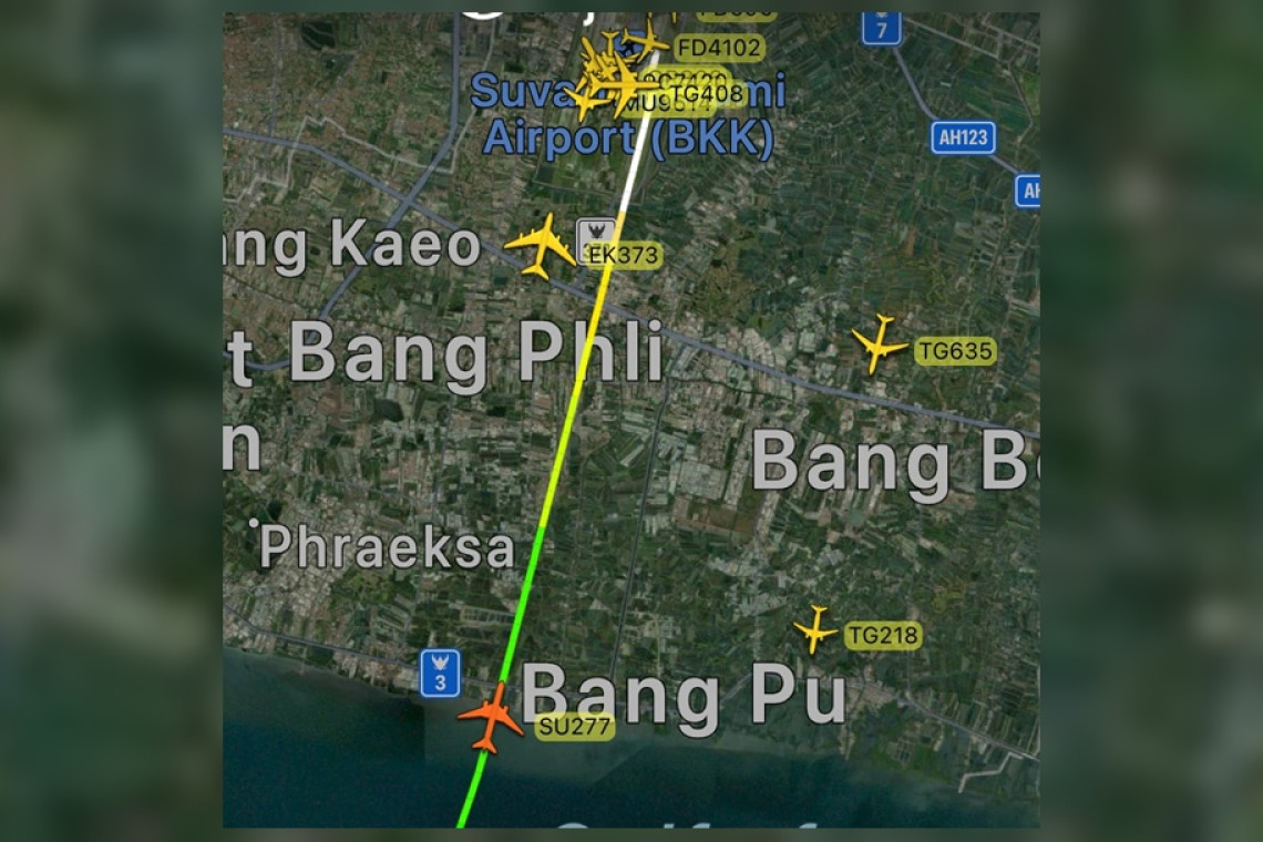 ความคืบหน้าล่าสุด เพจ "กัปตันไฟซอล บิน กิน เที่ยว Captain Faisal" โพสต์ข้อความระบุว่า SU277 ลงเรียบร้อยครับแล้ว ถูกเคลียร์ทางโล่ง ให้ลงดิ่งลงตรง ๆ รันเวย์ 01 ไปเลย ปกติเส้นทางขาเข้าจากทางใต้ STAR ( Standard Terminal Arrival Route) จะชื่อ LEBIM เส้นทางบินจะวกวนเป็นแบบภาพล่างขวา แต่อันนี้เป็นเคส Emergency เลยพุ่งตรงลงสนามเลย