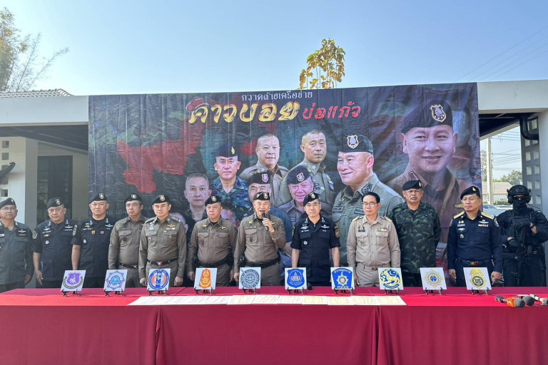พล.ต.อ.ประจวบ วงศ์สุข รอง ผบ.ตร. พร้อมด้วย พล.ต.ท.อัคราเดช พิมลศรี ผู้ช่วย ผบ.ตร. และ พล.ต.ท.สันติ ชัยนิรามัย ผบช.ปส. พล.ต.ต.สมบูรณ์ เทียนขาว พล.ต.ต.ออมสิน ตรารุ่งเรือง พล.ต.ต.พรศักดิ์ สุรสิทธิ์ พล.ต.ต.ธนรัชน์ สอนกล้า รอง ผบช.ปส. พล.ต.ต.อดิศ เจริญสวัสดิ์ ผบก.ปส.3 ได้บูรณาการกับหน่วยงานในพื้นที่ ได้แก่ พล.ท.กาจน์ กอรี รอง ผบ.นบ.ยส.35 พล.ต.ต.ธนะรัชต์ ชุ่มสวัสดิ์ รอง ผบช.ภ.5 พล.ต.ต.ธวัชชัย พงษ์วิวัฒน์ชัย รอง ผบช.ภ.5 พล.ต.ต.วรพัฒน์ บุญมา ผบก.ตชด.ภาค 3 นายธันวา ผุดผ่อง ผอ.ปปส.ภาค 5 นายปฤณ เมฆานันท์ ผอ.สำนักปราบปรามยาเสพติด สำนักงาน ป.ป.ป.ส. ผู้แทนสำนักงาน ปปง. และ นายศิวะ ธมิกานนท์ รองผู้ว่าราชการจังหวัดเชียงใหม่ เปิดปฏิบัติการปิดล้อมตรวจค้น “กวาดล้างเครือข่ายคาวบอยบ่อแก้ว” 30 จุด ในวันที่ 12 ก.พ.68 เพื่อขยายผลจับกุมและยึดอายัดทรัพย์สินผู้ที่เกี่ยวข้องกับขบวนการลำเลียงยาเสพติดในพื้นที่ชายแดน