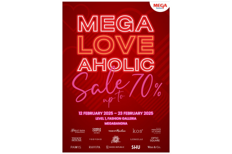 ศูนย์การค้าเมกาบางนา แหล่งช้อปปิ้งที่ใหญ่ที่สุดแห่งกรุงเทพฯ ฝั่งตะวันออก พร้อมเติมเต็มการใช้ชีวิตให้ทุกๆ วันคุ้มค่ามากยิ่งขึ้น ด้วยแนวคิด YOUR EVERYDAY MEETING PLACE ชวนสายเปย์อินเลิฟรับเทศกาลวาเลนไทน์นี้ไปกับงาน “MEGA LOVA AHOLIC” วันที่ 12 – 23 กุมภาพันธ์ 2568 ณ โซนแฟชั่น แกลอเรีย ชั้น 1 ช้อปสนุกดีต่อใจ ไม่ว่าจะเปย์ของขวัญเติมความสุขให้ตัวเอง หรือเปย์ของขวัญแทนใจให้คนพิเศษ ทั้งเสื้อผ้าแฟชั่นอินเทรนด์ เครื่องประดับเลอค่า กระเป๋าดีไซน์หรู ของแต่งบ้านหลากสไตล์ ตุ๊กตาสุดคิวท์ เครื่องหอมสร้างบรรยากาศโรแมนติก เป็นต้น โดยมีแบรนด์ดังมากมายร่วมมอบส่วนลดสูงสุดถึง 70% ได้แก่ MEDIUM AND MORE, WISH & CO., GREAT HANA, KOS, RAVIPA, TEDDY HOUSE, PAWIS, CANDLE CASTLE, HOUSE OF RECHIC, SUNEV, SHU, YODYOKO, SHOE REPUBLIC, LONGLAI และ OPTICSQUARE