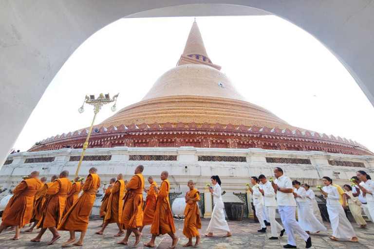 สำหรับการจัดกิจกรรมในครั้งนี้ พระศรีวิสุทธิวงศ์ รองเจ้าคณะจังหวัดนครปฐม ผู้ช่วยเจ้าอาวาสวัดพระปฐมเจดีย์ ราชวรมหาวิหาร นำผู้เข้าร่วมพิธี กล่าวคำแสดงตนเป็นพุทธมามกะ จากนั้นได้แสดงพระธรรมเทศนา เพื่อน้อมนำคำสั่งสอนของพระพุทธศาสนาอันพึงปฏิบัติมาประยุกต์ใช้ในการดำเนินชีวิตประจำวัน อีกทั้งส่งเสริมให้พุทธศาสนิกชนละเว้นความชั่ว ทำความดี ทำจิตใจให้บริสุทธิ์ หลังจากนั้นได้ร่วมกันเจริญพระพุทธมนต์ และเวียนเทียนประทักษิณรอบองค์พระปฐมเจดีย์ จำนวน 3 รอบ เพื่อน้อมถวายเป็นพุทธบูชา
