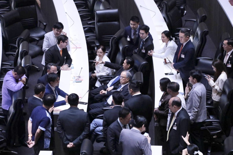 ทั้งนี้ บรรยากาศในห้องประชุมยังประท้วงวุ่นวาย ทำให้นายปกรณ์วุฒิ อุดมพิพัฒนสกุล สส.บัญชีรายชื่อ พรรคประชาชน ขอให้พักการประชุมเพื่อให้ทุกฝ่ายหารือร่วมกัน ทำให้นายวันมูหะมัดนอร์ ให้พักการประชุม 20 นาที ในเวลา10.10น. หลังจากที่ประชุมได้เปิดประชุมไปเพียง 30 นาที