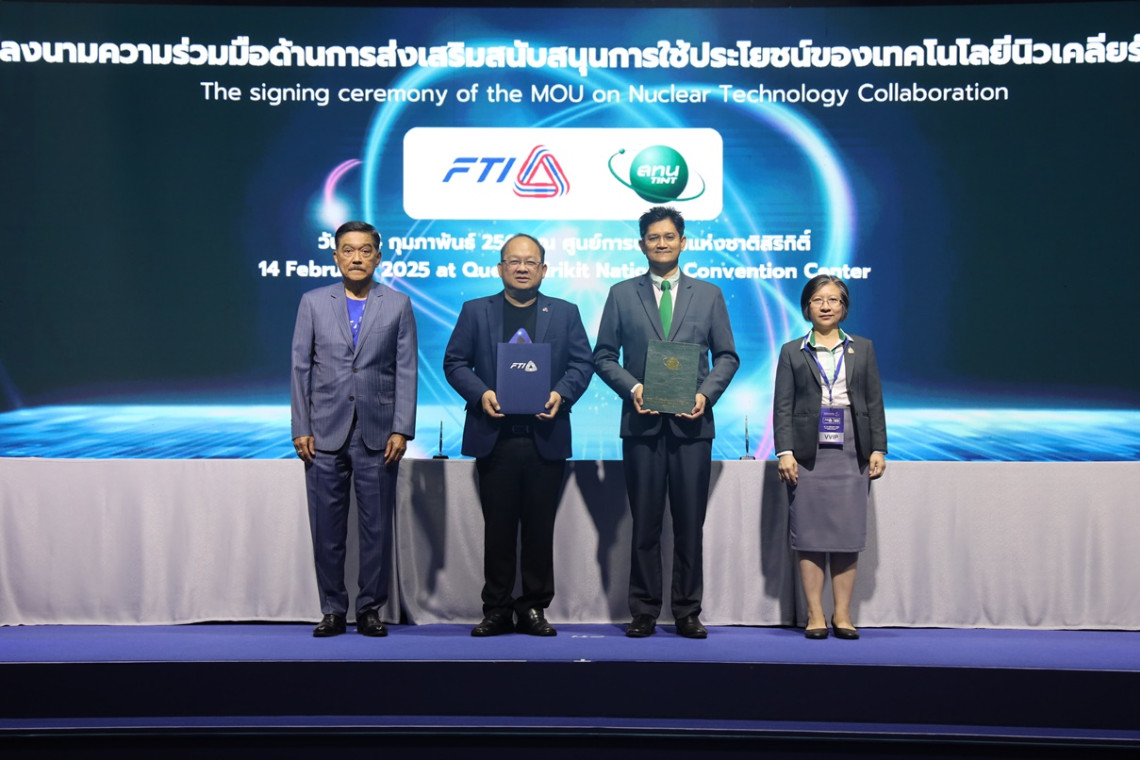สภาอุตสาหกรรมแห่งประเทศไทย (ส.อ.ท.) ร่วมกับ สถาบันเทคโนโลยีนิวเคลียร์แห่งชาติ (องค์การมหาชน) (สทน.) ลงนามบันทึกข้อตกลงความร่วมมือ (MOU) ด้านการส่งเสริมและสนับสนุนการใช้ประโยชน์ของเทคโนโลยีและรังสี ภายในงาน FTI EXPO 2025 ณ ศูนย์การประชุมแห่งชาติสิริกิติ์ ความร่วมมือในครั้งนี้ จะช่วยส่งเสริมการใช้ประโยชน์จากเทคโนโลยีนิวเคลียร์และรังสีในด้านการศึกษาวิจัย รวมถึงการให้บริการแก่ผู้ประกอบการภาคอุตสาหกรรมทุกระดับทั่วประเทศ เพื่อให้เกิดประโยชน์ในการเพิ่มมูลค่าทางเศรษฐกิจโดยรวมของประเทศ