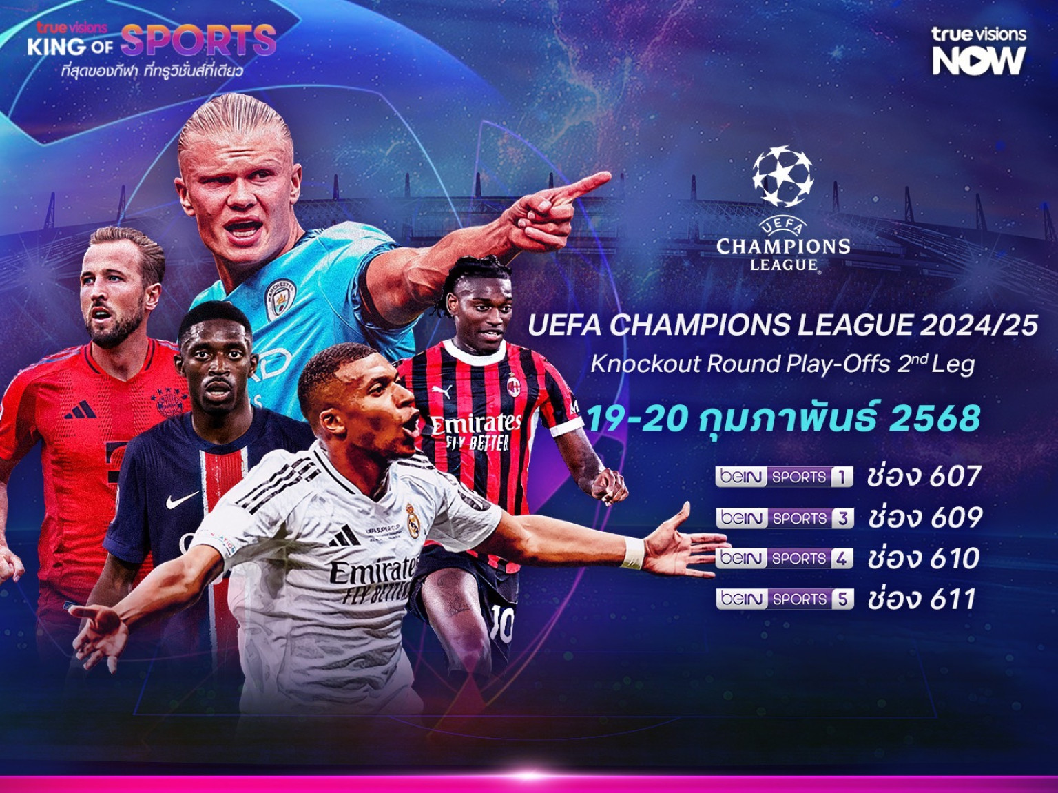 ทรูวิชั่นส์ ตอกย้ำการเป็นผู้นำคอนเทนต์กีฬาระดับโลก กับการถ่ายทอดสดฟุตบอลยุโรปถ้วยใหญ่ ยูฟ่า แชมเปียนส์ ลีก รอบ น็อคเอาต์ เฟส เพลย์ออฟ นัดที่ 2 วันพุธที่ 19 และพฤหัสบดีที่ 20 กุมภาพันธ์นี้ ตั้งแต่เวลา 00.45 น. เป็นต้นไป ทางทรูวิชั่นส์ และแอปพลิเคชันทรูวิชั่นส์ นาว ช่อง beIN Sports 1, 3, 4, 5 (607, 609, 610, 611) แฟนฟุตบอลห้ามพลาด คลิกรับความมัน https://truevisions-now.onelink.me/RQwi/c3k2cqs3