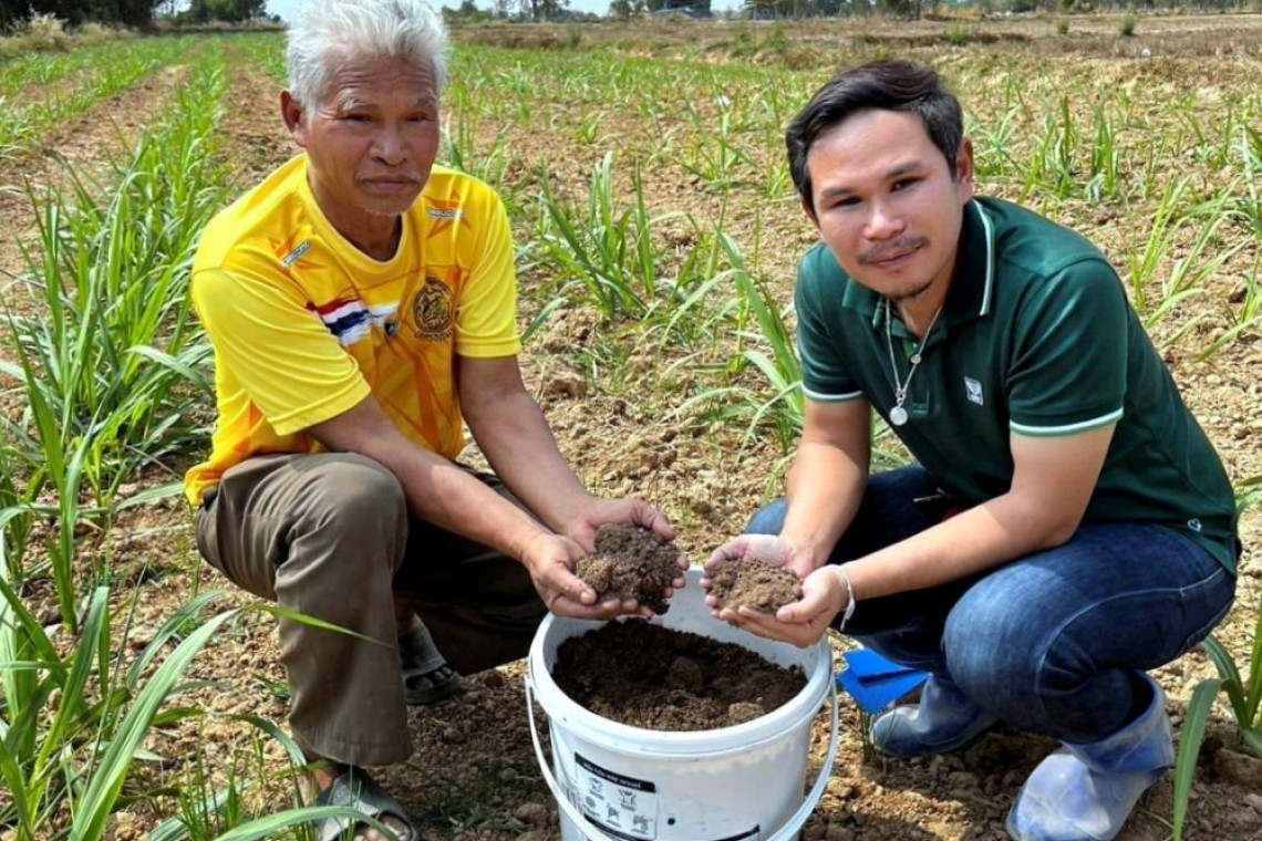 นอกจากนี้ คอมเพล็กซ์ไก่ไข่ยังต่อยอดสู่การทำปุ๋ยกากไบโอแก๊สด้วย ไพบูลย์ ทาพิลา เกษตรกรผู้ปลูกอ้อยอีกราย ที่เริ่มรับปุ๋ยกากไบโอแก๊สมาใช้กับไร่อ้อย 100 ไร่ เมื่อปี 2564 คาดหวังว่าจะช่วยประหยัดต้นทุน และลดการใช้ปุ๋ยเคมีซ้ำๆที่ทำให้สภาพดินเสียหาย หลังใช้แล้วไม่ผิดหวัง คุณภาพดินดีขึ้น อ้อยงามลำใหญ่ยาว ผลตอบแทนจากการขายอ้อยก็ดีขึ้นด้วย ก่อนนี้เคยใช้ปุ๋ยเคมีมีค่าใช้จ่ายปีละ 3 แสน หลังใช้ปุ๋ยชีวภาพช่วยลดต้นทุนได้ถึง 50-70%