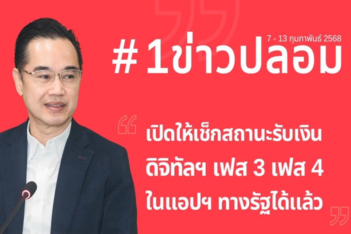 สำหรับอันดับ 1 เรื่อง “เช็กสถานะรับเงินดิจิทัลฯ เฟส 3 เฟส 4 ในแอปฯ ทางรัฐได้แล้ว” กระทรวงดีอี ได้ประสานงานร่วมกับสำนักงานพัฒนารัฐบาลดิจิทัล (องค์การมหาชน) (สพร.) หรือ DGA สำนักนายกรัฐมนตรี ตรวจสอบแล้วพบว่า เป็นข้อมูลเท็จ โดยขอชี้แจงว่า ช่องทางที่ให้ข้อมูลข่าวสารดังกล่าว ไม่ใช่ช่องทางการติดต่อสื่อสารเพื่อประชาสัมพันธ์ให้ข้อมูลการดำเนินงานตามภารกิจที่ถูกต้องอย่างเป็นทางการของ DGA และปัจจุบัน ยังไม่มีการประกาศรายละเอียดการแจกเงินดิจิทัลวอลเล็ต เฟส 3 และ เฟส 4 อย่างเป็นทางการแต่อย่างใด ดังนั้น เพื่อไม่ให้เกิดความสับสน ขอให้ประชาชนติดตามข่าวสารจากช่องทางที่เป็นทางการของโครงการฯ ต่อไป