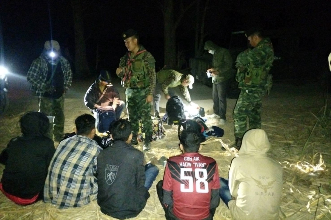 ระหว่างการลาดตระเวณได้ตรวจพบบุคคลต้องสงสัยจึงแสดงตัวเข้าตรวจสอบ ผลการปฏิบัติ ตรวจพบบุคคลต้องสงสัยสัญชาติเมียนมา จำนวน 5 ราย เป็นผู้ชายทั้งหมด มีอายุอยู่ในวัยทำงาน