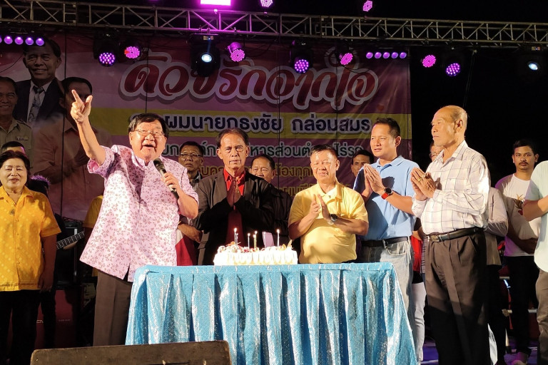 ทางด้านนายกธงชัย กล่าวว่าตนขอบคุณพี่น้องประชาชนตำบลไร่รถทั้ง 10 หมู่บ้านที่ให้เกียรติมาร่วมงาน วันคล้ายวันเกิดของตนที่สำคัญที่ตนได้มายืนอยู่ตรงนี้ได้และคณะผู้บริหาร มาดูแลพี่น้องประชาชนตำบลไร่รถ บริหารงบประมาณจนเกิดผลงานทั้ง 10 หมู่บ้านอย่างทั่วถึง สิ่งที่ตนและคณะผู้บริหารทำไม่มียกเว้นหมู่ใด เราทำอย่างเต็มกำลังความสามารถและความตั้งใจ ขอบคุณพี่น้องประชาชนทั้ง 10 หมู่บ้านที่ทำให้ตนได้มายืนอยู่ตรงนี้เพื่อดูแลพี่น้องประชาชนตำบลไร่รถ ในทุกๆด้าน เรียกได้ว่าน้ำไหล ไฟสว่าง ทางสะดวก ในช่วงเวลาที่เหลือจนถึงวันที่ 18 พฤศจิกายน 2568 ตนและคณะผู้บริหารจะทำหน้าที่ให้ดีที่สุด และตนขอเรียนยืนยันว่าที่มีกระแสข่าวลือว่าตนไม่ลง สมัครนายก อบต.ไร่รถ แล้ว จะให้คนโน้นคนนี้ลง ตนไม่มีเงินแล้วไม่ลงแล้ว ตนขอเรียนกับพี่น้องประชาชนว่าตนนายธงชัย กล่อมสมร นายก อบต.ไร่รถ สมัยนี้พร้อมลงเลือกตั้งสมัยต่อไปแน่นอน