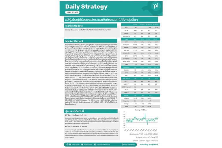 เมื่อวันที่ 18 ก.พ.68 บล.พาย เผยว่า ตลาดหุ้น Dow Jones และสินค้าโภคภัณฑ์ปิดทำการเนื่องในวันประธานาธิบดี