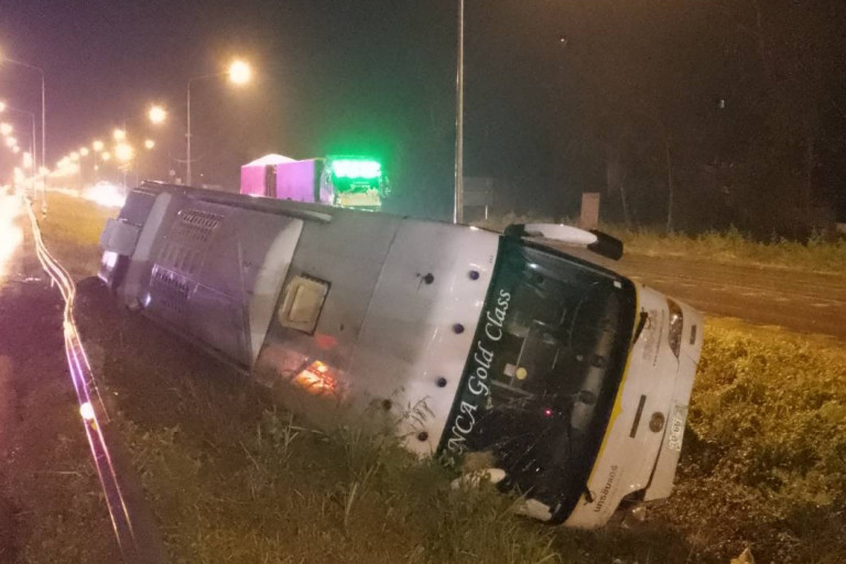 โคราชระทึก รถบัสพลิกคว่ำ กู้ชีพต้องเปิดประตูหลังคาช่วยคนเจ็บ 18 คน สาเหตุฝนแรกของปีทำให้ถนนลื่น