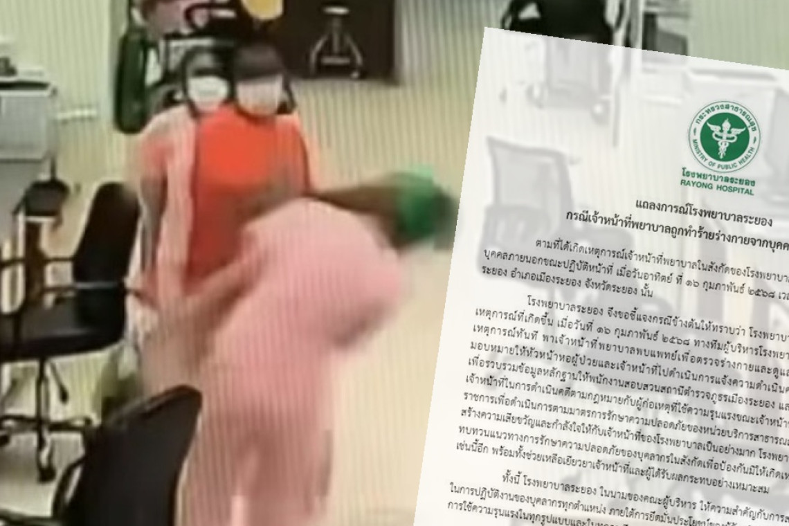 โรงพยาบาลระยอง จึงขอชี้แจงกรณีข้างต้นให้ทราบว่า โรงพยาบาลระยอง มิได้นิ่งนอนใจกับเหตุการณ์ที่เกิดขึ้น เมื่อวันที่ 16 ก.พ. 2568 ทางทีมผู้บริหารโรงพยาบาลได้ดำเนินการหลังเกิดเหตุการณ์ทันที พาเจ้าหน้าที่พยาบาลพบแพทย์เพื่อตรวจร่างกายและดูแลอาการบาดเจ็บเบื้องต้น มอบหมายให้หัวหน้าหอผู้ป่วยและเจ้าหน้าที่ไปดำเนินการแจ้งความดำเนินคดี และมอบทีมกฎหมายเพื่อรวบรวมข้อมูลหลักฐานให้พนักงานสอบสวนสถามีตำรวจภูธรเมืองระยอง และให้ดำเนินการช่วยเหลือเจ้าหน้าที่ในการดำเนินคดีตามกฎหมายกับผู้ก่อเหตุที่ใช้ความรุนแรงขณะเจ้าหน้าที่ปฏิบัติหน้าที่ในสถานที่ราชการเพื่อดำเนินการตามมาตรการรักษาความปลอดภัยของหน่วยบริการสาธารณสุข ซึ่งเหตุการณ์ในครั้งนี้สร้างความเสียขวัญและกำลังใจให้กับเจ้าหน้าที่ของโรงพยาบาลเป็นอย่างมาก โรงพยาบาลจึงได้สั่งการให้มีการทบทวนแนวทางการรักษาความปลอดภัยของบุคลากรในสังกัดเพื่อป้องกันมิให้เกิดเหตุการณ์ใช้ความรุนแรงเช่นนี้อีก พร้อมทั้งช่วยเหลือเยียวยาเจ้าหน้าที่และผู้ได้รับผลกระทบอย่างเหมาะสม