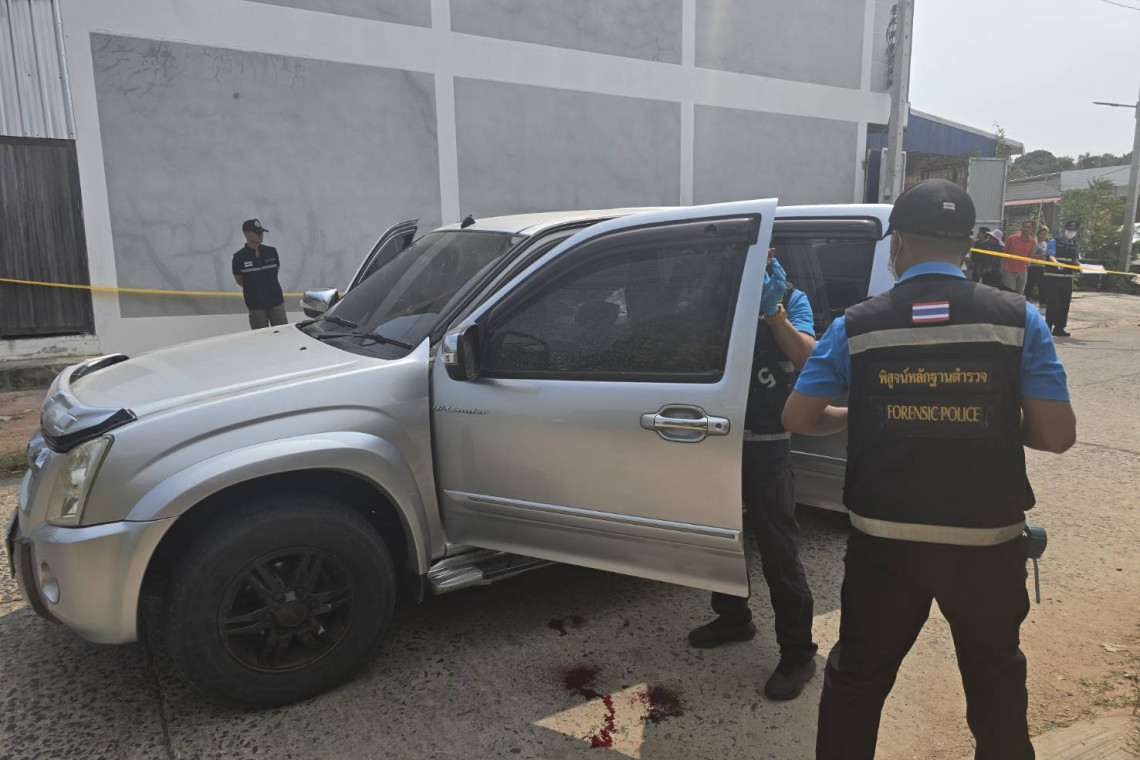 บริเวณเบาะข้างหน้ารถพบนายสมศักดิ์ อายุ 46 ปี อยู่บ้านเลขที่194 ม.10 บ้านคูขาด ต.คูเมือง อ.คูเมือง จ.บุรีรัมย์ ถูกกระสุนยิงบริเวณขมับขวาทะลุขมับซ้าย กระสุนทะลุออกจากรถไปโดนบ้านเรือนชาวบ้าน และพบปลอกกระสุนจำนวน 2 นัดหล่นอยู่ในรถ