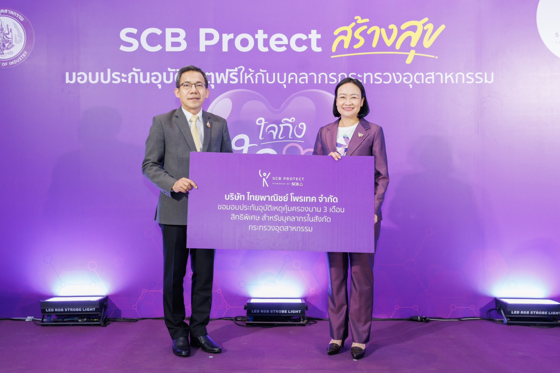 บริษัท ไทยพาณิชย์ โพรเทค จำกัด ร่วมมือกับกระทรวงอุตสาหกรรม เปิดตัวโครงการ “SCB Protect สร้างสุข แจกประกันอุบัติเหตุฟรี 90 วัน” เพื่อมอบความคุ้มครองให้แก่บุคลากรของกระทรวงอุตสาหกรรมทั่วประเทศ โดยมี นายศุภกิจ บุญศิริ รองปลัดกระทรวงอุตสาหกรรม ให้เกียรติเป็นประธานเปิดงาน พร้อมด้วย นางสาวปรมาศิริ มโนลม้าย ประธานเจ้าหน้าที่บริหาร บริษัท ไทยพาณิชย์ โพรเทค จำกัด ร่วมส่งมอบกรมธรรม์แก่เจ้าหน้าที่กระทรวงอุตสาหกรรมในพิธี