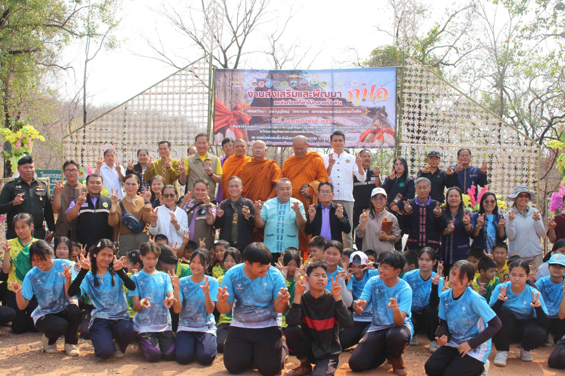 จากนั้นเวลา 09.00 น. นายผดุงศักดิ์ อิ่มเอิบ รอง ผวจ.กาฬสินธุ์ ประธานพิธีผูกบุญบวชป่าภายใต้กิจกรรมส่งเสริมและพัฒนาแหล่งท่องเที่ยวไม้กลายเป็นหิน “น้อมศรัทธา มหาบุญใหญ่ไทนาบอน ออนชอนแหล่งท่องเที่ยวไม้กลายเป็นหิน”ครั้งที่ 1 ประจำปี 2568 โดยมีนายธนากร บุญซ้อน นายอำเภอคำม่วง ดร.พรเพ็ญ จันทสิทธิ์ ผอ.พิพิธภัณฑ์สิรินธร และนักวิชาการ พร้อมด้วยอบต.นาบอน กำนัน ผู้ใหญ่บ้าน และสถานศึกษา ร่วมกิจกรรมอย่างคึกคัก โดยการจัดงานครั้งนี้ มีกลุ่มอนุรักษ์ป่าชุมชนตำบลนาบอน และศูนย์เกษตรอินทรีย์เพชรจินดา เป็นกำลังหลักในการขับเคลื่อนกิจกรรม ซึ่งภายหลังพิธิเปิด นายผดุงศักดิ์ อิ่มเอิบ รองผวจ.กาฬสินธุ์ ได้เดินสำรวจเส้นทางท่องเที่ยวภูปอ ทั้ง 2 เส้นทาง ที่ประกอบด้วย 1. เส้นทางไม้กลายเป็นหิน และ 2. ชมทิวกิ่วถ้ำผาด้วย