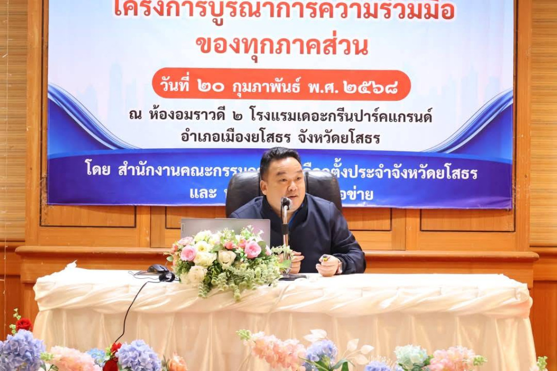 ผู้สื่อข่าวรายงาน ว่า เมื่อวันที่ 20 ก.พ.68 เวลา 09.00 น. นายธีรวุธ ไชยยนท์ ผู้อำนวยการสำนักงาน กกต.จังหวัดยโสธร เป็นประธานการประชุมเชิงปฏิบัติการเตรียมความพร้อมทีมวิทยากรประจำจังหวัด ตามโครงการบูรณาการความร่วมมือของทุกภาคส่วนที่ห้องอมราวดีโรงแรมเดอะกรีนปาร์ค จังหวัดยโสธร
