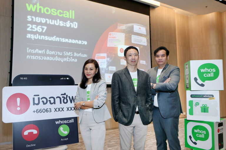 ในปี 2567 Whoscall ตรวจพบ สายโทรศัพท์และข้อความ SMS หลอกลวงสูงถึง 168 ล้านครั้ง เพิ่มขึ้นกว่า 112% จาก 79.2 ล้านครั้งในปี 2566 และถือเป็นยอดที่สูงสุดในรอบ 5 ปีของประเทศไทย ในส่วนของจำนวนการโทรหลอกลวงเพิ่มขึ้นเป็น 38 ล้านครั้ง จาก 20.8 ล้านครั้งในปี 2566 ขณะที่จำนวนข้อความ SMS หลอกลวงพุ่งสูงถึงเกือบ 130 ล้านครั้ง จาก 58.3 ล้านครั้งในปี 2566 กลโกงที่พบมากที่สุด ได้แก่ การหลอกขายบริการและสินค้าปลอม การแอบอ้างตัวเป็นหน่วยงาน และหลอกว่ามีเงินกู้อนุมัติง่าย การหลอกทวงเงิน การหลอกว่าเป็นหนี้