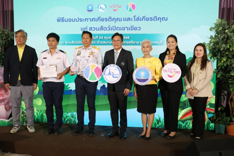 การท่องเที่ยวแห่งประเทศไทย (ททท.) มอบประกาศเกียรติคุณ และโล่ห์เกียรติคุณ แก่สวนสัตว์เปิดเขาเขียว และพี่เลี้ยงหมูเด้ง