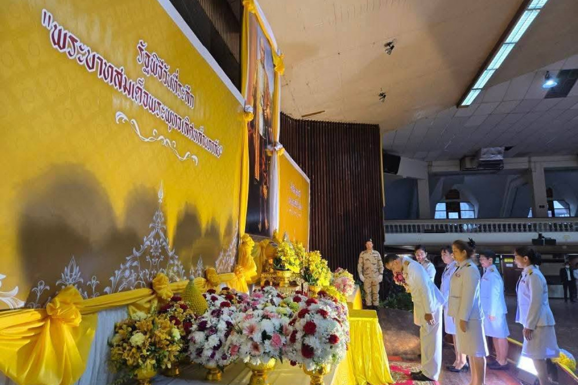 มอบหมายให้นายอุกฤษฎ์ บุษบงค์ รองนายแพทย์สาธารณสุขจังหวัดกาญจนบุรี นำคณะเจ้าหน้าที่สำนักงานสาธารณสุขจังหวัดกาญจนบุรี เข้าร่วมพิธีวันที่ระลึกพระบาทสมเด็จพระพุทธเลิศหล้านภาลัย ประจำปี 2568 วางพานพุ่มดอกไม้สด