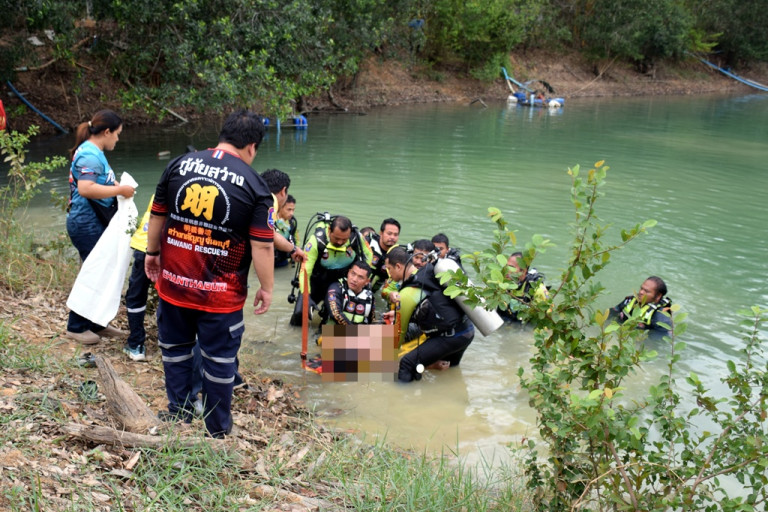 หลังทราบพิกัด ทางกำลังอาสากู้ภัยฯชุดค้นหาทางน้ำ ได้ประกอบอุปกรณ์ และทดสอบความพร้อม ก่อนวางแผนลงดำค้นหา ในลักษณะปูพรมเรียงหน้ากระดาน โดยใช้เวลาประมาณ 15 นาที ก็พบร่างผู้เสียชีวิต ชาย 1 ราย จมอยู่ก้นสระ ห่างจากฝั่งออกไปประมาณ 20 เมตร สภาพสวมกางเกงยีนส์ขายาว ไม่สวมเสื้อ ก่อนนำร่างขึ้นฝั่งเพื่อให้เจ้าหน้าที่ตำรวจตรวจสอบ ท่ามกลางเสียงร้องไห้ระงมของเพื่อนคนงาน