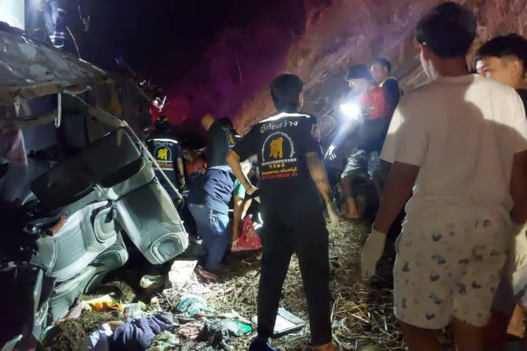 รถทัวร์ทัศนศึกษา ทต.พรเจริญ จ.บึงกาญ พลิกคว่ำตกเขาโทน จ.ปราจีนบุรี ตาย 18 เจ็บอีกจำนวนมาก