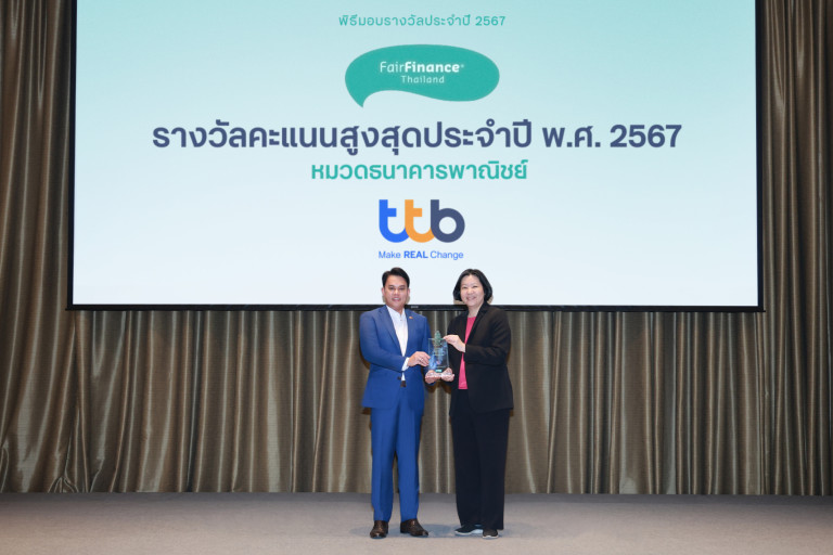 ทีเอ็มบีธนชาต หรือ ทีทีบี เดินหน้าประกาศความสำเร็จบนเส้นทางสู่ “การธนาคารเพื่อความยั่งยืน” ครองอันดับหนึ่งธนาคารที่มีคะแนนด้าน ESG สูงสุดต่อเนื่องเป็นปีที่ 6 ด้วยคะแนนที่เพิ่มขึ้น 9.59% ในการประเมินนโยบายด้าน ESG ของภาคธนาคารไทย จากการประเมินโดยคณะวิจัยแนวร่วมการเงินที่เป็นธรรมประเทศไทย (Fair Finance Thailand) ประจำปี 2567 ได้คะแนนโดดเด่นในหมวดต่าง ๆ ที่ได้ดำเนินการปฏิบัติเป็นปีแรก หรือการยกระดับมาตรฐานการดำเนินงานด้วยการรับหลักการและมาตรฐานสากลที่ส่งผลต่อการประเมินจนได้รับคะแนนสูงขึ้น คือ หมวดการเปลี่ยนแปลงสภาพภูมิอากาศ หมวดสิทธิแรงงาน และหมวดการคุ้มครองผู้บริโภค โดยมีนายกมลพันธ์ ลักษณา หัวหน้าการพัฒนาที่ยั่งยืน ทีเอ็มบีธนชาต เป็นตัวแทนรับรางวัลจากนางสาวสฤณี อาชวานันทกุล หัวหน้าคณะวิจัย แนวร่วมการเงินที่เป็นธรรมประเทศไทย ณ ศูนย์การเรียนรู้ธนาคารแห่งประเทศไทย (Bank of Thailand Learning Center)