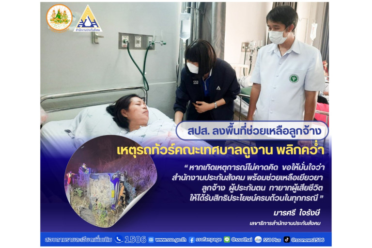 “พิพัฒน์” มอบหมาย สปส. ลงพื้นที่ให้การช่วยเหลือลูกจ้าง เหตุรถทัวร์ดูงานของคณะเทศบาลอำเภอพรเจริญ จังหวัดบึงกาฬ พลิกคว่ำเสียชีวิต บาดเจ็บหลายรายที่จังหวัดปราจีนบุรี เยียวยาทายาทกว่า 1 ล้านบาท