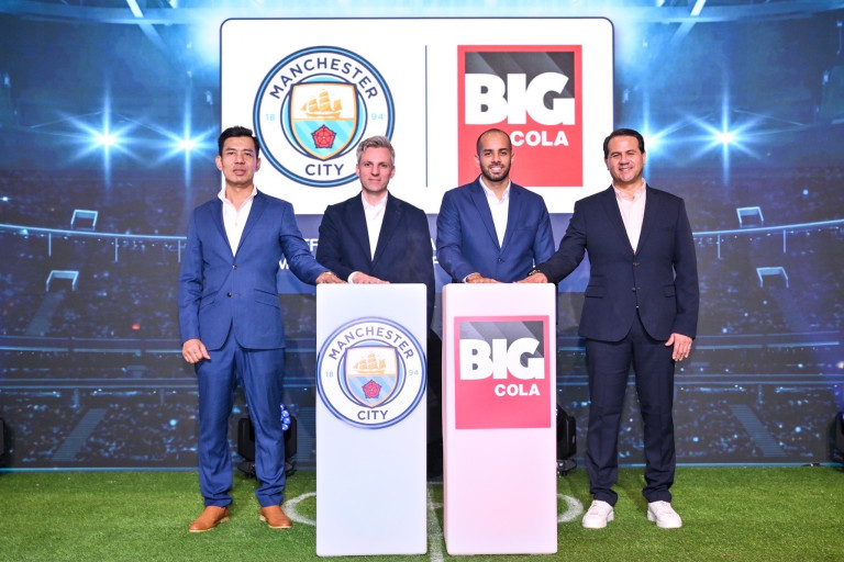 ทั้งนี้เพื่อตอกย้ำความเป็นโกลบอล แบรนด์อย่างแท้จริง บริษัทจึงได้เซ็นสัญญา เป็น Official Regional Partner กับสโมสรฟุตบอล “แมนเชสเตอร์ ซิตี้” สโมสรแรกที่ได้แชมป์พรีเมียร์ลีก 4 ฤดูกาลติดต่อกัน โดยมีระยะเวลาสัญญา 2 ปี ในการนำตราสัญลักษณ์สโมสร (CREST) นักฟุตบอล และสิทธิประโยชน์อื่นๆมาทำกิจกรรมการตลาด ซึ่งกีฬาฟุตบอลถือเป็นกีฬาที่คนไทยให้ความนิยมอันดับ 1 โดยเฉพาะฟุตบอลพรีเมียร์ลีก ประเทศอังกฤษ ซึ่งเป็นลีกระดับโลกที่คนไทยชื่นชอบเป็นอันดับ 1 เช่นกัน ทำให้เชื่อมั่นว่า จะสามารถสร้างให้แบรนด์บิ๊กโคล่า กลับมาแข็งแรง และขยายฐานลูกค้าคนรุ่นใหม่ ซึ่งเป็นกลุ่มเป้าหมายเดียวกับแมนฯซิตี้ ที่ต้องการขยายฐานแฟนคลับ โดยเฉพาะคนรุ่นใหม่ในอาเซียนให้มากขึ้นด้วย