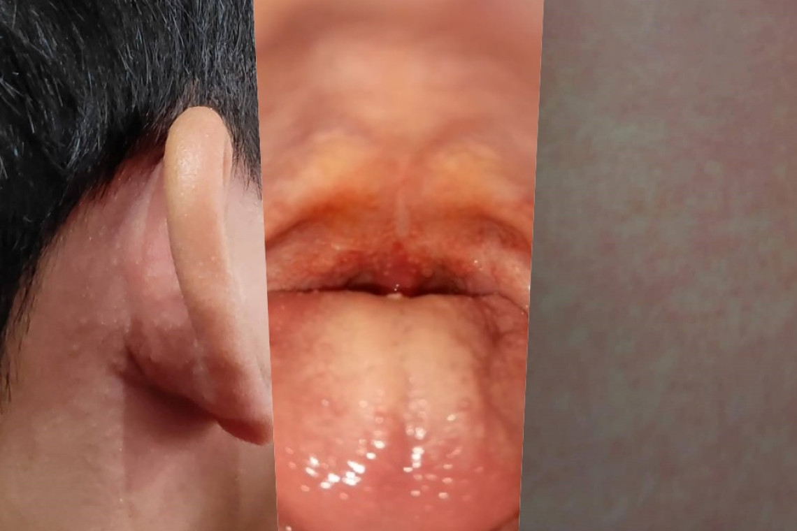 • ลิ้นแดงเป็นปุ่มๆคล้ายสตรอเบอร์รี่