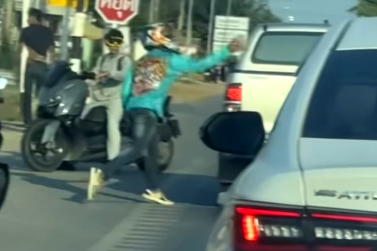แก๊งเด็กแว้นเหิมเกริม ใช้ก้อนหินปาใส่กระจกรถกระบะของหญิงสาว ขณะจอดติดไฟแดง ห่างจากป้อมตำรวจสายตรวจเพียง 50 เมตร เหตุฉุนถูกขับแซง โชคดีคนขับและเด็กเล็กไม่ได้รับบาดเจ็บ หลังก่อเหตุหนีลอยนวล