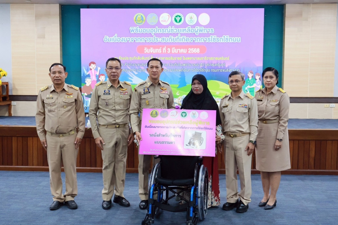 วันที่ 3 มี.ค.68 ที่โรงพยาบาลนราธิวาสราชนครินทร์ อำเภอเมืองนราธิวาส ว่าที่ร้อยตรีตระกูล โทธรรม ผู้ว่าราชการจังหวัดนราธิวาส เป็นประธานในพิธีมอบอุปกรณ์ช่วยเหลือผู้พิการ อันเนื่องมาจากการประสบภัยภัยที่เกิดจากการใช้รถใช้ถนน ประจำปี 2568 โดยมี นายวีรพัฒน์ บุณฑริก รองผู้ว่าราชการจังหวัดนราธิวาส นายสนั่น จำปา ขนส่งจังหวัดนราธิวาส นายแพทย์พรประสิทธิ์ จันทระ ผู้อำนวยการโรงพยาบาลนราธิวาสราชนครินทร์ หัวหน้าส่วนราชการและผู้พิการในพื้นที่ ที่ขอรับการจัดสรรอุปกรณ์ช่วยเหลือผู้พิการ เข้าร่วมในพิธีฯ