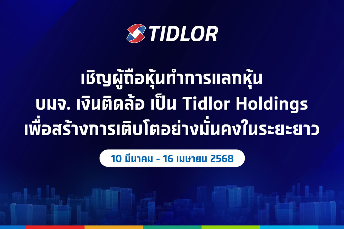 บริษัทเงินติดล้อ จำกัด (มหาชน)(“TIDLOR” หรือ “บริษัทฯ”) เปิดเผยว่า ปัจจุบันแบบแสดงรายการข้อมูลการเสนอขายหลักทรัพย์พร้อมการทำคำเสนอซื้อหลักทรัพย์ (แบบ 69/247-1) ของบริษัทติดล้อโฮลดิ้งส์ จำกัด (มหาชน) (“Tidlor Holdings” หรือ“ติดล้อ โฮลดิ้งส์”)ได้มีผลใช้บังคับแล้วเมื่อวันที่ 6 มีนาคม 2568 โดยบริษัทฯ ได้ดำเนินการจัดตั้ง Tidlor Holdings ซึ่งเป็นบริษัทลงทุน (Holding Company) และจะทำคำเสนอซื้อหลักทรัพย์ทั้งหมดของ TIDLOR จากผู้ถือหุ้นของบริษัทฯ โดยออกและเสนอขายหุ้นสามัญเพิ่มทุน เพื่อเป็นการแลกเปลี่ยนกับหุ้นสามัญของบริษัทฯ (Tender Offer) ในอัตราแลกเปลี่ยน 1 หุ้นสามัญของ TIDLOR ต่อ 1 หุ้นสามัญของ Tidlor Holdings และเปิดให้ผู้ถือหุ้น TIDLOR ทำการแลกหุ้นในช่วงระหว่าง วันที่ 10 มีนาคม 2568 ถึงวันที่ 16 เมษายน 2568 เวลา 9.00 น. – 16.00 น. (เฉพาะวันทำการ) ซึ่งผู้ถือหุ้นจำเป็นต้องดำเนินการ “ตอบรับ” คำเสนอซื้อหลักทรัพย์ด้วยตนเอง (กระบวนการแลกหุ้นจะไม่เป็นไปโดยอัตโนมัติ)