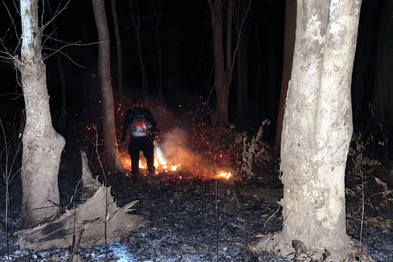 วันที่ 9 มีนาคม 2568 สำนักจัดการทรัพยากรป่าไม้ที่ 1 สาขาแม่ฮ่องสอน อำนวยการโดยนายเกษม คำมา ผู้อำนวยการสำนักจัดการทรัพยากรป่าไม้ที่ 1 สาขาแม่ฮ่องสอน ได้สั่งการ หน่วยป้องกันและพัฒนาป่าไม้เมืองแม่ฮ่องสอน หน่วยป้องกันรักษาป่าที่ มส.2 (เมืองแม่ฮ่องสอน) และหน่วยป้องกันรักษาป่าที่ มส.8 (ม่อนตะแลง)เจ้าหน้าที่หน่วยฯ จำนวน 5 นาย ร่วมเจ้าหน้าที่พนักงานจ้างเหมาบริการสนับสนุนการควบคุมไฟป่าองค์กรปกครองส่วนท้องถิ่นตำบล (ปางหมู) จำนวน 7 นาย ได้เข้าประสาน องค์การบริหารส่วนตำบลห้วยโป่ง จำนวน 3 นาย, ผู้ใหญ่บ้าน ผู้ช่วยผู้ใหญ่บ้าน และราษฎรบ้านไม้ซางหนาม จำนวน 3 นาย ร่วมกันเข้าทำการควบคุมไฟป่าตามที่ได้รับแจ้ง ว่ามีไฟไหม้ป่าบ้านไม้ซางหนาม หมู่ที่ 6 ตำบลห้วยโป่ง อำเมือง จังหวัดแม่ฮ่องสอน ตรวจพบไฟไหม้บนภูเขาเป็นวงกว้าง มีจำนวน ๓ จุด จึงร่วมกันเข้าควบคุมไฟป่าได้จำนวน 2 จุด คงเหลือจำนวน 1 จุด ไม่สามารถเข้าควบคุมไฟได้ เนื่องจากเป็นพื้นที่ห่างไกลอยู่ในป่าลึกไม่สามารถเข้าไปถึงได้ ประกอบกับเป็นเวลากลางคืน เกรงว่าอาจจะไม่ปลอดภัยในการปฏิบัติงาน เจ้าหน้าที่จึงได้ร่วมทำแนวกันไฟเพื่อสกัดกั้นไม่ให้ลุกลามไปยังพื้นที่อื่น จึงได้ขอให้ผู้ใหญ่บ้านไม้ซางหนามและราษฎรจิตอาสาบ้านไม้ซางนามวางกำลังเฝ้าระวังติดตามสถานการณ์และ สังเกตการณ์ต่อไป