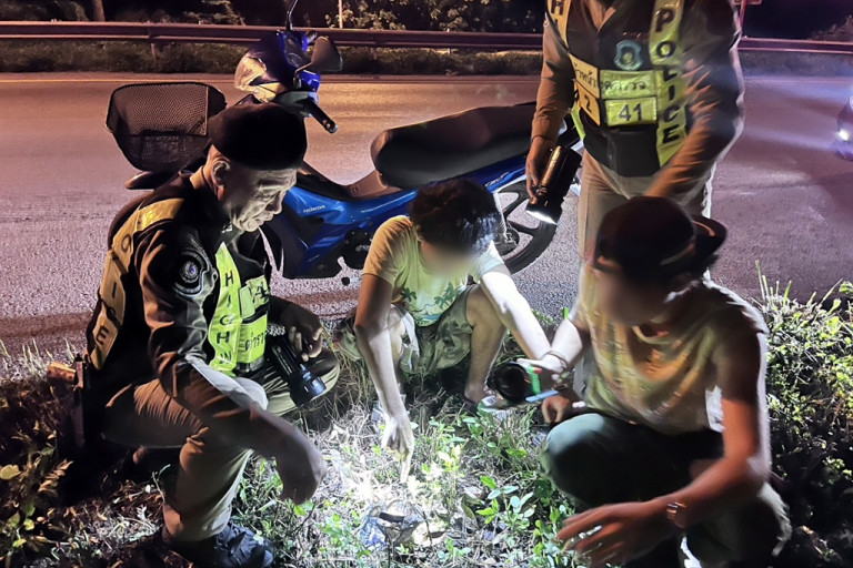 สืบเนื่องจาก เวลาประมาณ 01.00 น. วันที่ 10 มี.ค.68 ขณะเจ้าหน้าที่ตำรวจทางหลวงชุมพรได้ออกตรวจในเขตพื้นที่รับผิดชอบ มาถึงถนนเอเชีย 41 บริเวณ กม.12 (ขาล่องใต้) ต.ทุ่งคา อ.เมือง จ.ชุมพร ได้พบชาย 2 คน ขับขี่รถจักรยานยนต์ไม่ติดแผ่นป้ายทะเบียน ขับอยู่บนถนนริมขอบทางด้านซ้าย ประกอบกับมีลักษณะลุกลี้ลุกลนเมื่อเห็นรถวิทยุของเจ้าหน้าที่ตำรวจทางหลวง เจ้าหน้าที่ตำรวจจึงได้ส่งสัญญาณให้รถคันดังกล่าวหยุดรถเพื่อตรวจสอบ