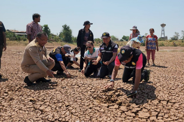 ภัยแล้งคุกคาม สระน้ำผลิตประปา อ.พุทไธสง แห้งขอดจนเห็นดินแตกระแหงไม่สามารถสูบน้ำผลิตประปาได้ กระทบ 2 หมู่บ้าน รวมถึงวัด และ ร.ร. ขาดแคลนน้ำ นายอำเภอลงพื้นที่รับทราบปัญหาด้วยตัวเอง เบื้องต้น อบต.ระดมน้ำแจกจ่าย พร้อมประสานขอรถสูบน้ำระยะไกลผันเติมสระ และเสนอของบขุดลอกแก้ปัญหาระยะยาว เผยหาก เม.ย.ไม่มีฝนสระผลิตประปาจ่อแห้งเพิ่มอีก 5 หมู่บ้าน