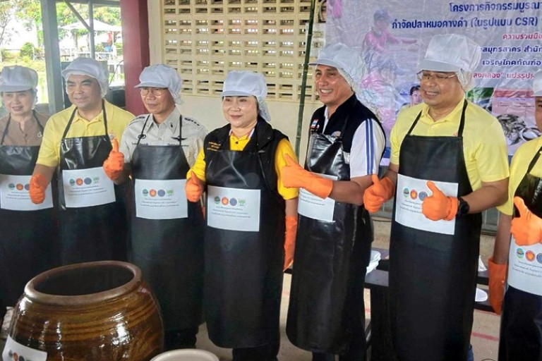 นายเผดิม รอดอินทร์ ประมงจังหวัดสมุทรสาคร เปิดเผยว่า กิจกรรมในวันนี้ได้รับความร่วมมือจากทุกฝ่ายโดยเฉพาะนักโทษในเรือนจำได้ให้ความสนใจและให้ความร่วมมืออย่างดียิ่ง ในการฝึกวิชาชีพให้กับนักโทษในเรือนจำให้มีวิชาชีพติดตัวเมื่อพ้นโทษออกไปสามารถแปรรูปผลิตภัณฑ์น้ำปลา จากปลาหมอคางดำ มาเป็นน้ำปลา "หับเผย สมุทรสาคร" เป็นสินค้าที่ขึ้นชื่อมีความต้องการของตลาด เป็นการสร้างรายได้และพัฒนาคุณภาพชีวิตของนักโทษในเรือนจำให้มีคุณภาพชีวิตที่ดีขึ้น และเป็นการแก้ไขปัญหาปลาหมอคางดำในจังหวัดสมุทรสาครให้ลดน้อยลงไปในตัว สร้างระบบนิเวศน์ให้กลับคืนมาสู่จังหวัดสมุทรสาคร