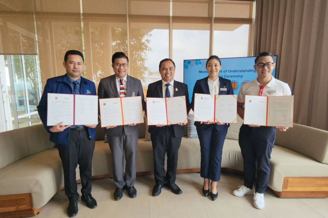 เมื่อเวลา 10.00 น. วันที่ 11 มี.ค.68 ที่โรงแรมฮิลตัน การ์เด้น อินน์ระยอง ต.เชิงเนิน อ.เมือง จ.ระยอง ผู้สื่อข่าวรายงานว่า นายกิตติพงค์ อุตตมะเวทิน ผอ. วิทยาลัยเทคนิคระยอง นายยุทธพันธ์ โคตรพันธ์ ผอ. วิทยาลัยเทคนิคบ้านค่าย และนายวีระชัย สมบัติกำไร ผอ.วิทยาลัยเทคนิคนิคมอุตสาหกรรมระยอง ลงนาม MOU กับ น.ส.ธรณ์ภัคอร จีรวัฒน์ธนโชค ผจก.โรงแรมฮิลตัน การ์เด้น อินน์ระยอง และว่าที่ ร.ต.กนกศักดิ์ บุตะโยธี ผจก.แผนกทรัพยากรบุคคลฯ เพื่อร่วมมือกันพัฒนาหลักสูตรการเรียน การสอนให้ตรงตามความต้องการของตลาดแรงงาน และสามารถทำงานในสถานประกอบการได้ สอดคล้องกับนโยบายการพัฒนากำลังคนอาชีวศึกษาในเขต EEC