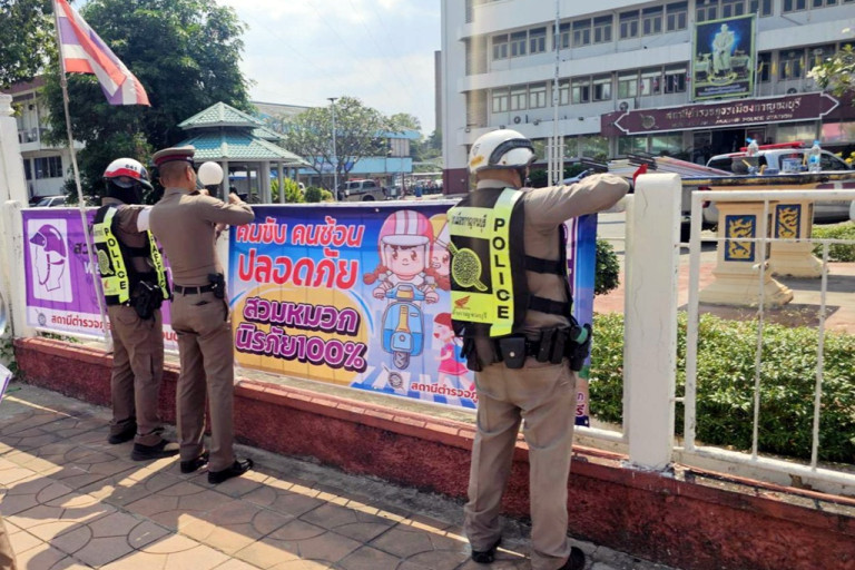 โดยเฉพาะในช่วงวันหยุดยาวๆ เพื่อฉลองประเพณีช่วงเทศกาลสงกรานต์ของทุกปี และวันหยุดยาวที่กำลังจะเวียนมาถถึงในเดือนเมษายน 2568 นี้อีกครั้งหนึ่ง ดังนั้น เพื่อความปลอดภัยในชีวืตและทรัพย์สินของพี่น้องแระชาชนชาวกาญจนบุรี รวมถึงนักท่องเที่ยวทั้งชาวไทยและชาววต่างชาติ จึงสั่งการให้ พ.ต.อ.สุรยุทธ เมฆมังกร ผกก.สภ.เมืองกาญจนบุรี และ พ.ต.ท.โชคชัย ไทยเจริญ รอง ผกก.จร.ฯ และ พ.ต.ต.เมธี บัวซ้อน สว.จร.สภ.เมืองกาญจนบุรี พร้อมเจ้าหน้าที่ตำรวจจราจร ติดตั้งป้ายข้อความประชาสัมพันธ์ ด้วยการกำหนดพื้นที่เพื่อสร้างวินัยจจราจร(Zone of Accident) ตามมาตรการ 10 รสขม เพื่อให้ประชาชนที่ใช้รถใช้ถนนปฎิบัติตามกฎหมายจราจร โดยกำหนดให้ สภ.เมืองกาญจจนบุรี เแนจุดศูนย์กลาง มีรัศมี 500 เมตร ซึ่งได้ติดป้ายโดยรอบและกำหนดพื้นที่ด้านใน สภ.เมืองกาญจนบุรี เป็นพื้นที่ควบคุมการสวมหมวกนิรภัย(Wear Safeiy Helmet)100 % โดยได้ติดตั้งป้ายประชาสัมพันธ์ทางเข้า-ออก สภ.เมืองกาญจนบุรีและให้เจ้าหน้าที่ตำรวจรวมทั้งประชาชนปฎิบัติตามกฎหมาย เพื่อป้องกันและลดอุบัติเหตุอีกทั้งยังเป็นการลดอาการบาดเจ็บหรือเสียชีวิตอีกด้วย