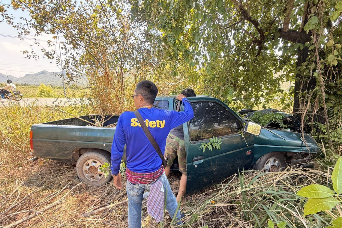 ผู้สื่อข่าวรายงานว่า เมื่อเวลา 11.20 น.ของวันที่ 13 มีนาคม 2568 ร.ต.อ.ประสิทธิ ชนประเสริฐ รองสารวัตรสอบสวน สภ.เมืองกาญจนบุรี ได้รับแจ้งจากตำรวจประจำจุดบริการประชาชนตำบลบ้านเก่า อ.เมืองฯ ว่าเกิดอุบัติเหตุรถแหกโค้งชนต้นไม้เสียชีวิต 1 ราย เหตุเกิดบนถนนสายบ้านเก่า-พุน้ำร้อน ใกล้เคียงร้านครัวหลังเขา บ้านพุน้อย ต.บ้านเก่า หลังรับแจ้งจึงรายงานให้ผู้บังคับบัญชาทราบเรื่อง จากนั้นจึงรีบเดินทางไปตรวจสอบที่เกิดเหตุพบว่า ห่างจากริมถนนลงไปข้างทางประมาณ 200 เมตร ในพงหญ้าข้างทางมีร่องรอยล้อรถวิ่งเป็นทางยาวเข้าไปในพงหญ้าข้างทาง และเมื่อเดินตามรอยล้อรถเข้าไป ก็พบว่า มีรถยนต์กระบะยี่ห้อนิสสันรุ่นบิ๊กเอ็มสีเขียว หมายเลขทะเบียน บฉ.2672 กาญจนบุรีจอดอยู่ในลักษณะเสียหลักชนต้นไม้ขนาดใหญ่จนด้านหน้ารถพังเสียหาย