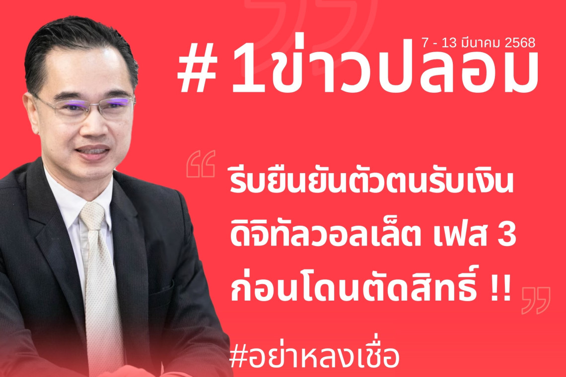 อันดับที่ 1 : เรื่อง รีบยืนยันตัวตนรับเงินดิจิทัลวอลเล็ตเฟส 3 ก่อนโดนตัดสิทธิ์