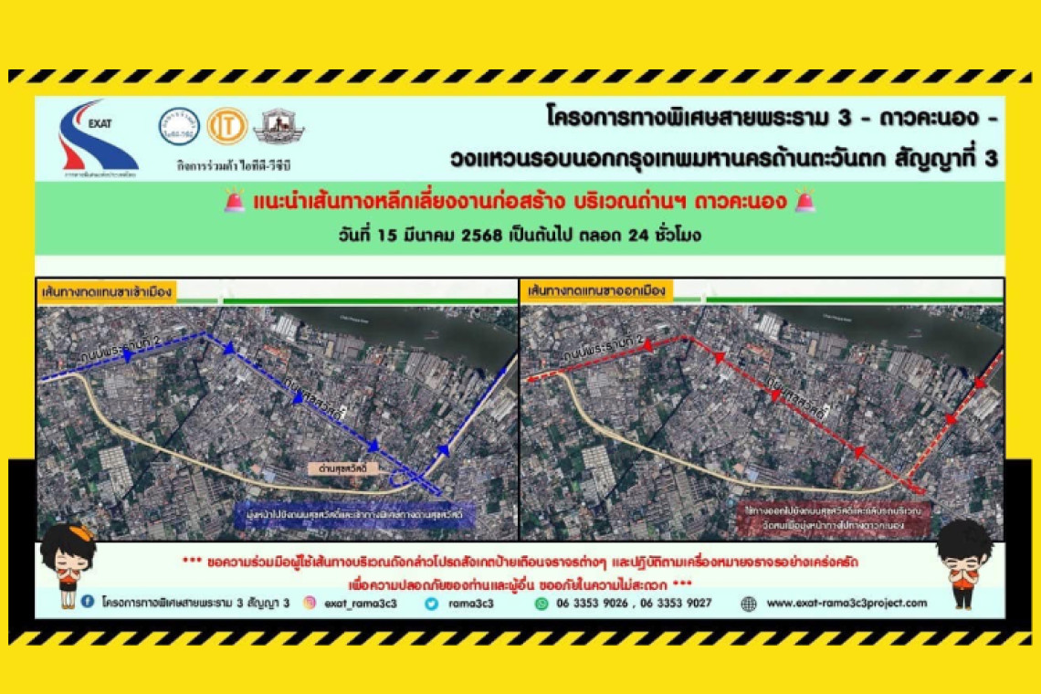 วันที่ 15 มี.ค.68 สรยุทธ สุทัศนะจินดา กรรมกรข่าว โพสต์ข้อความ ระบุว่า... ประชาสัมพันธ์ให้ประชาชนใช้เส้นทางหลีกเลี่ยงงานก่อสร้าง บริเวณด่านเก็บค่าผ่านทางพิเศษดาวคะนอง