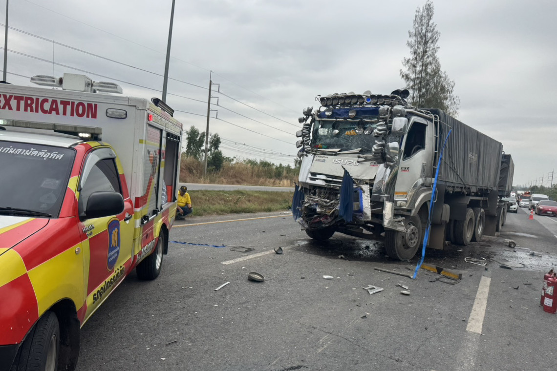 รถบรรทุกพ่วง ชนท้ายรถบรรทุกน้ำมันเครื่องบินเจท 48,000 ลิตร ขณะเตรียมจะนำไปส่งให้ลูกค้า เจ้าหน้าที่ต้องปิดถนนเลี่ยงเมืองขอนแก่นเพื่อความปลอดภัยขณะเปลี่ยนถ่ายน้ำมัน
